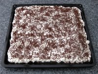 auf den Teig sieben. Nicht mehr mit dem Handrührer, sondern mit einem