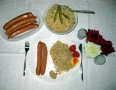 Essig und Öl, mit Gurken, Fleischwurst, mit