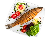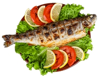 Meer- oder Süßwasser wie Forelle, Lachs, Seezunge, Thunfisch oder Sardinen. Am