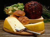 Eine Scheibe Brot, ein Stück Schinken oder Käse, das über